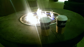 Later in the evening, I got a message from my friend saying she would be in the area. Her and her puppy, Lily, came by right in time for my lunch. They brought me coffee! She had picked up a cappuccino and a mocha from a place called Jeannie's by my work. They have lots to choose from and I will have to try to head over there soon. My friend explained the large variety of food they offer that I think I need to check it out for myself. I took the mocha and she got the cappuccino. With the cookies she brought us, the three of us (Lily included) sat at the fire pits and enjoyed my lunch break together. The weather was just right to hang outside at 9pm. It was really great coffee, possibly related to Peet's coffee. It got me through another late night with my Night Auditor.